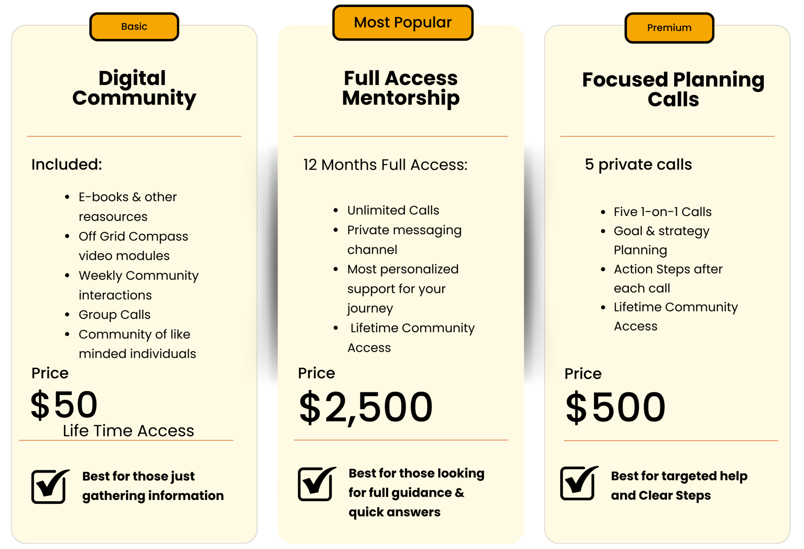 If you are not ready for private mentorship or planning calls, the community is the best place to start.